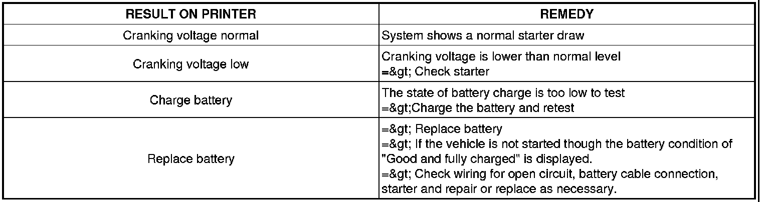 Cranking voltage and starter test results will be displayed on the screen.