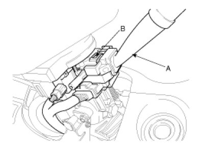 2. Remove the wiper switch (A) by pushing the lock pin (B) after disconnecting the connector.