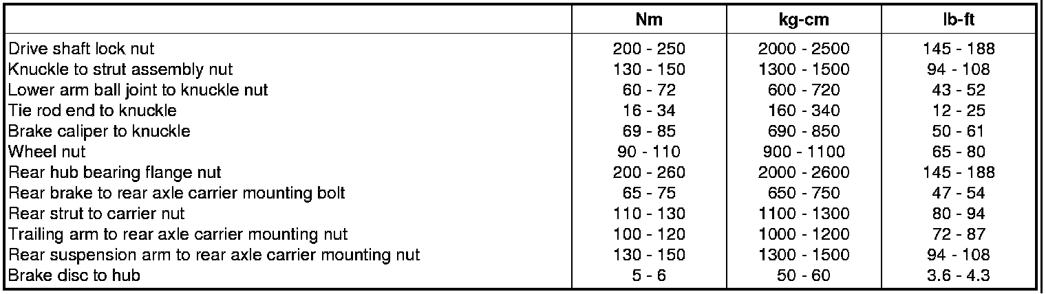 TIGHTENING TORQUECAUTION:Replace self-locking nuts with new ones after removal.