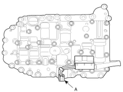 8. Disconnect the VFS solenoid valve connector(A) from the valve body.
