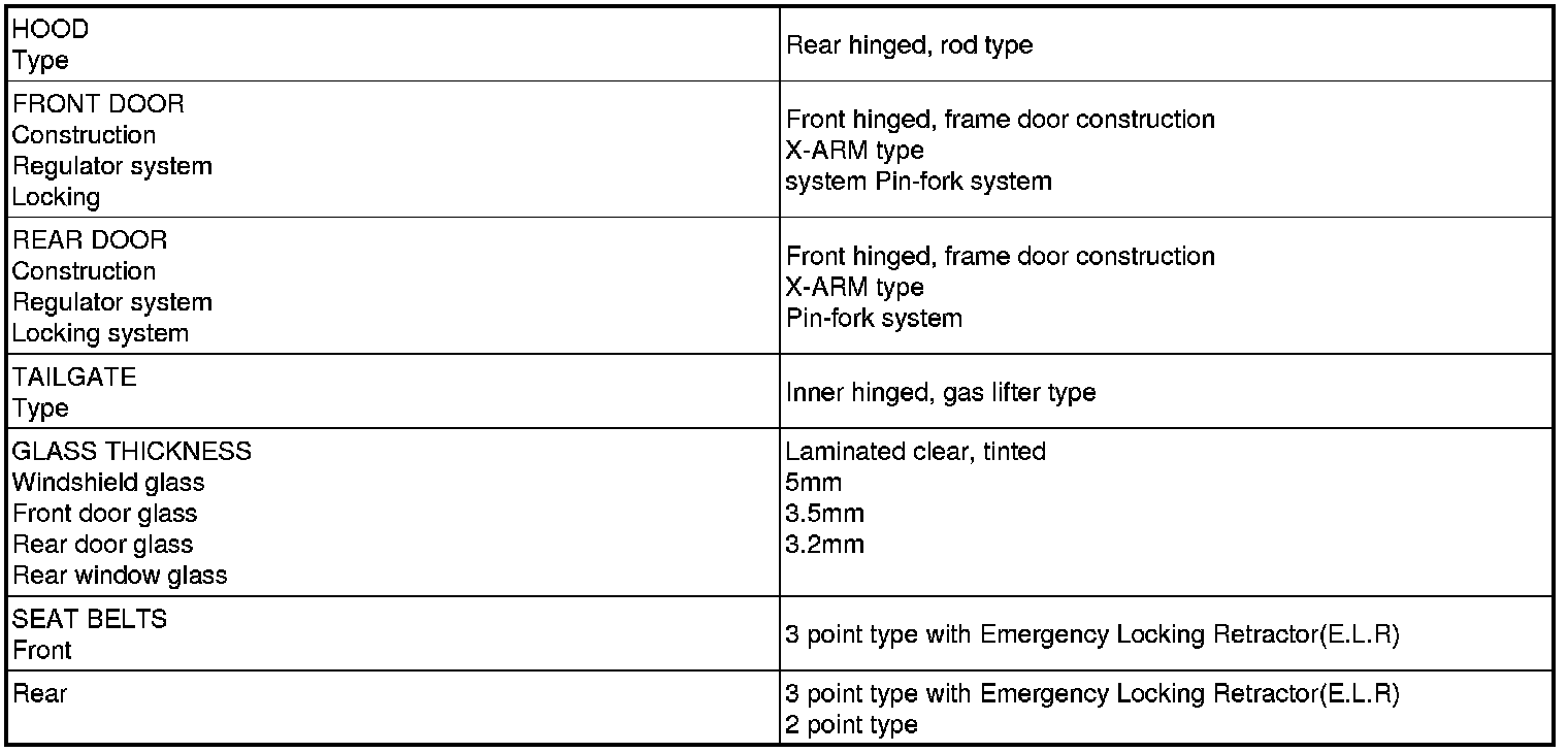 Body and Frame: Specifications