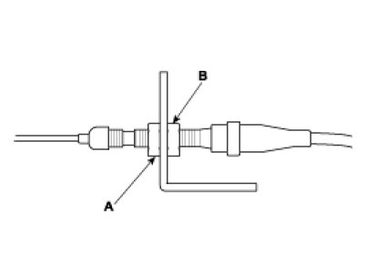 6. Pull the cable so that the adjusting nut (A) touches the bracket, and tighten the locknut (B).