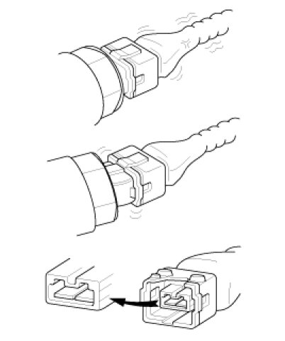 : Lightly shake the connector and wiring harness vertically and then horizontally.