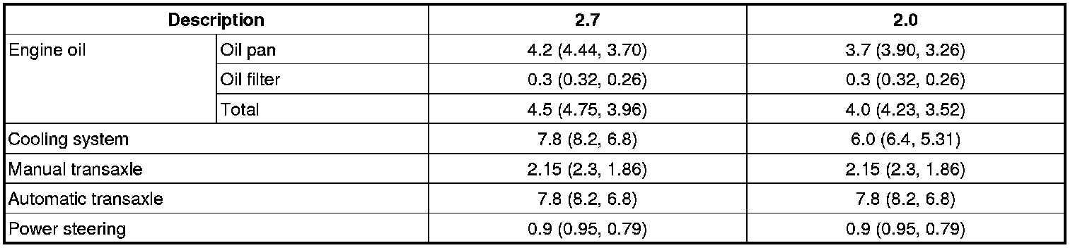 Capacities : [liter (U.S.qts, Imp.qts)]