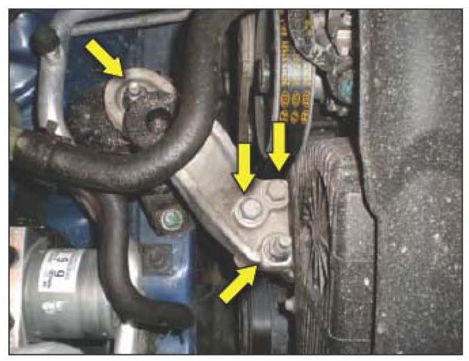 7. 2.7L Engine, remove the 2 bolts and 2 nuts holding the mount bracket between the engine and mount.