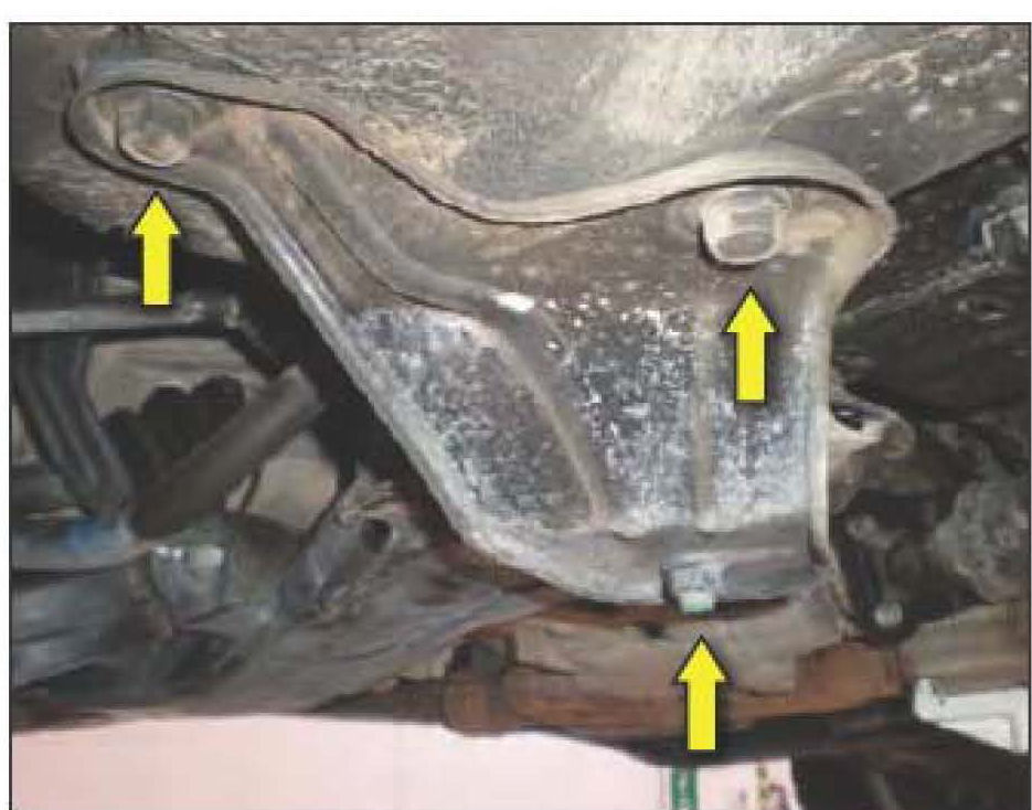 14. Remove the 2 bolts holding the rear of the subframe to the