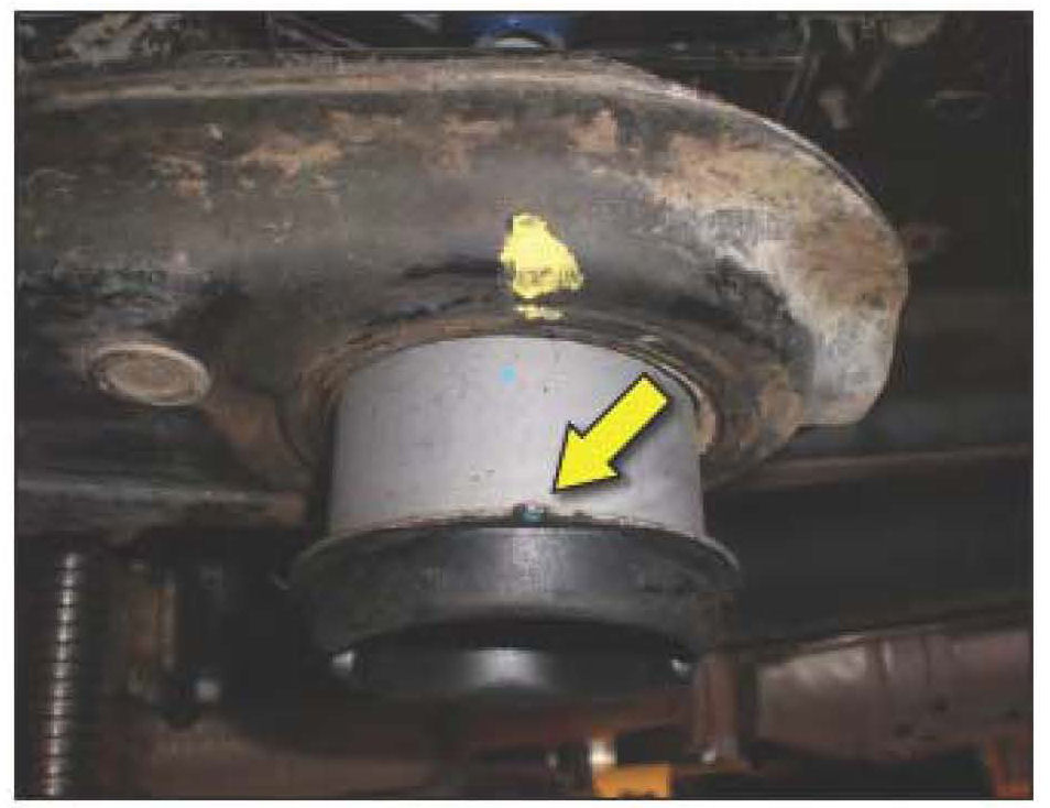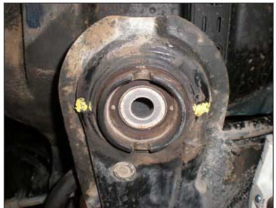 from the subframe, inspect the bushing housing area for a gap