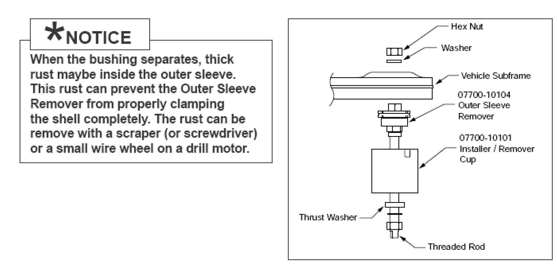 1. After the subframe bushing's outer sleeve has been removed