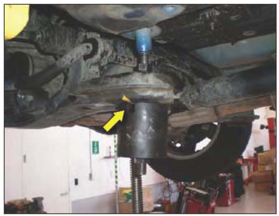 15. With the Screw Jack, lower the rear of the subframe to get at