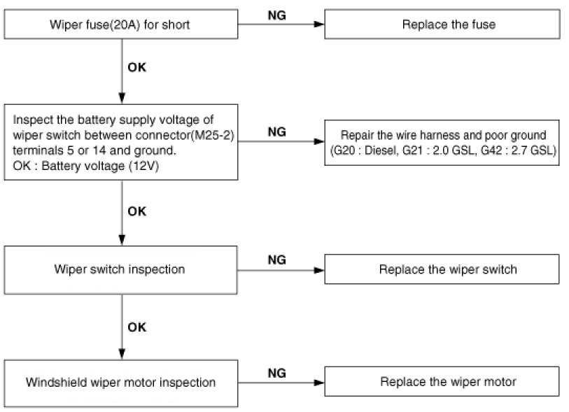 Wiper low and wiper high do not work.