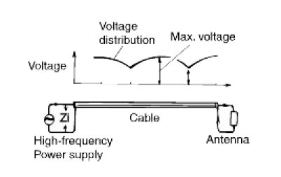 STANDING-WAVE RATIO If an antenna and a cable having different impedances are connected, the input impedance Zi will vary in accordance with the length of the cable and the frequency of the transmitter, and the voltage distribution will also vary in accordance with the location.