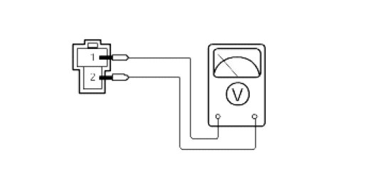 Using the multi-tester, check the output voltage between terminals 1 and 2 in the thermistor.