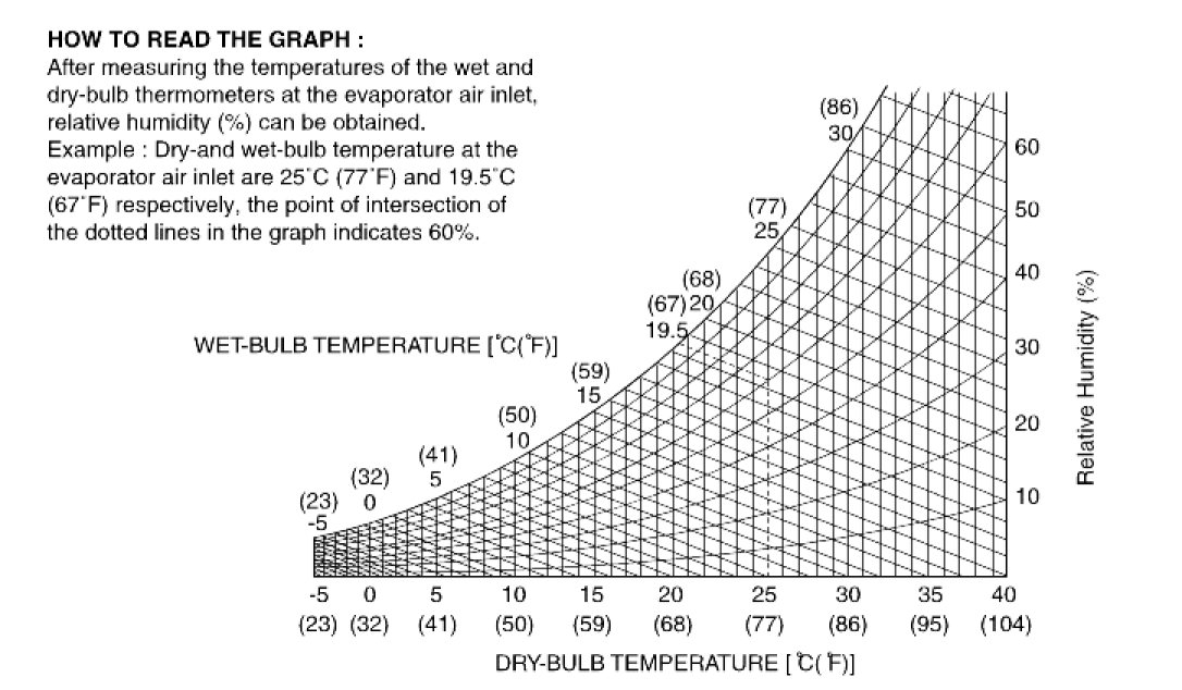 8. Calculate the relative humidity from the psychrometric graph by comparing the wet-and dry-bulb reading at the air inlet.