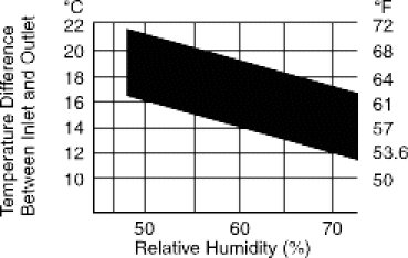 10. Check that the intersection of the relative humidity and temperature difference falls within the block below. If the intersection is within the block, cooling performance is satisfactory.