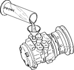 6. Supply 70 cc (2.47 oz.) of oil to the compressor and install it onto the vehicle.