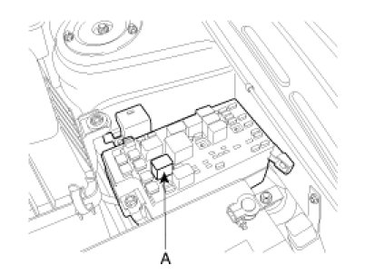 To prevent fuel being injected from injectors while the engine is being cranked, remove the fuel pump(A) relay from the fuse box.