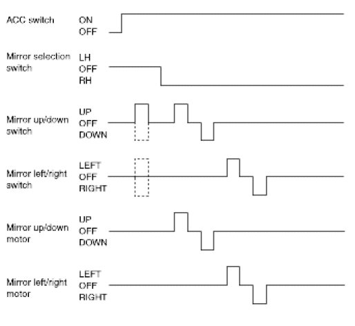2. Mirror drive signal cannot be outputted for more than 15 seconds in one direction. (In case of memory replay or manual switch operation)
