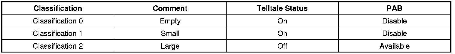 Classification information and telltale status are as below table