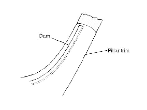 7. Install the self-adhesive foam dam to the body where the original dam had been.
