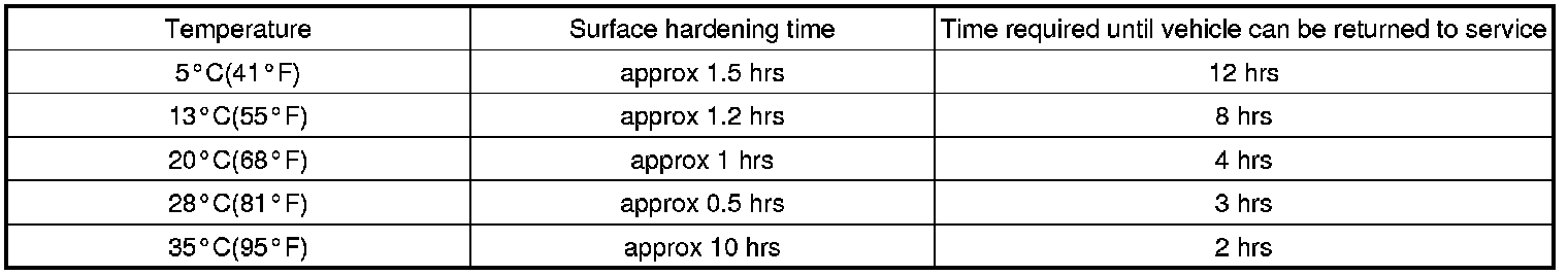 The following cure times may be critical. Attempting to replace a windshield in ambient temperature over 35°C(95°F) should be avoided before completing the application.