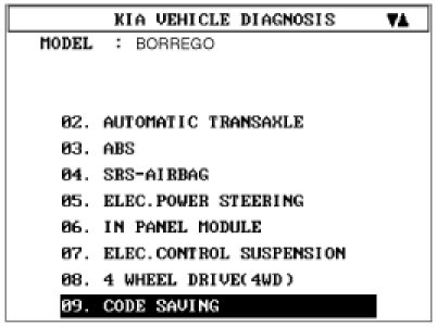 3. After selecting "CODE SAVING" menu, push "ENTER" key, then the screen will be shown as below.
