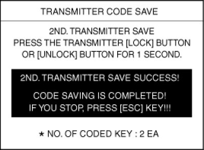 4. After removing the ignition key from key cylinder, push "ENTER" key to proceed to the next mode for code saving. Follow steps 1 to 4 and then code saving is completed.