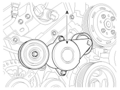 20. Install the drive belt tensioner (A).