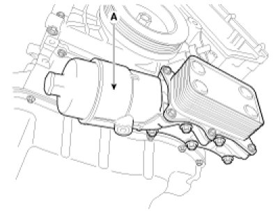 19. Install the oil filter and oil cooler assembly (A).