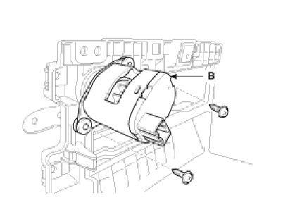 6. Disconnect the connector of in-car sensor. Loosen the mounting 2 screws and then remove the in-car sensor (B).