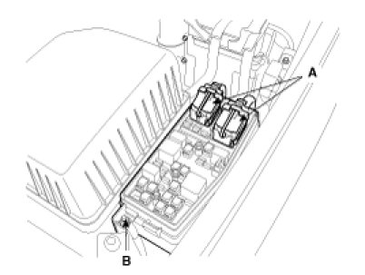 3. Remove the FAM connectors (2EA) (A) and battery terminal nut (1EA) (B).