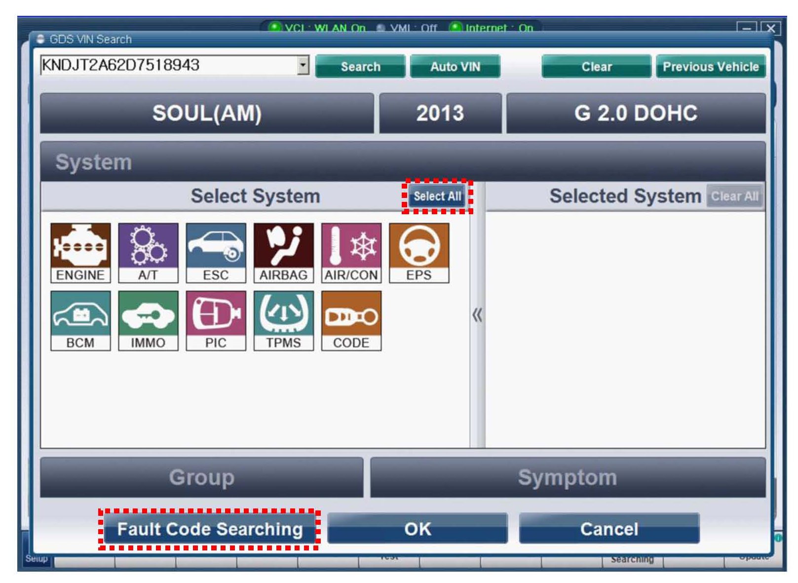 1. Click on the "Select All" button, and then click on the "Fault Code Searching" button.