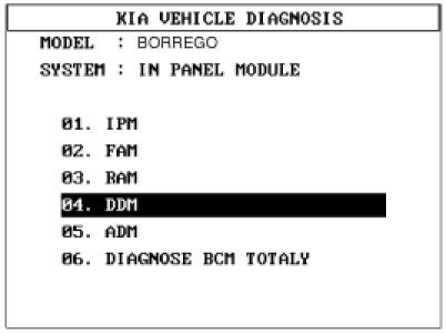 1. When checking the assist power window switch, select a vehicle type and "In-panel module (IPM)" menu.