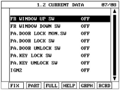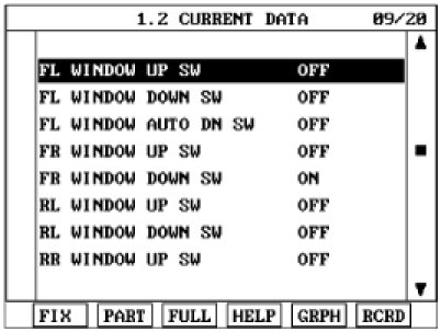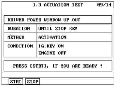 4. To check the input value of power window switch in force mode, select option "Actuation Test".