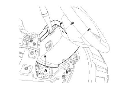 2. Remove the steering column upper and lower shrouds (A) after removing 3 screws and connector.