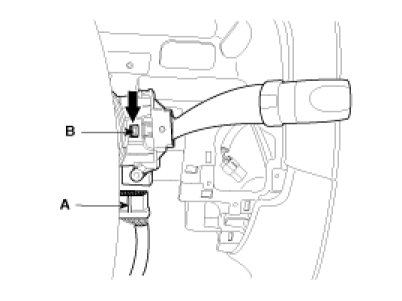 3. Remove the wiper switch after disconnecting the connector (A) with pushing the lock pin (B).