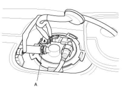 (2) Disconnect the fuel pump connector (A).