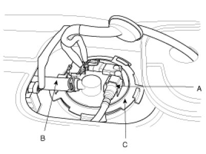 3. Unscrew the fuel pump locking ring (C) with the special service tool (SST No.: 09310-3K000) and remove the fuel pump assembly.