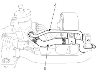 2. Disconnect the pressure tube (A) and suction tube (B) from the power steering oil pump.