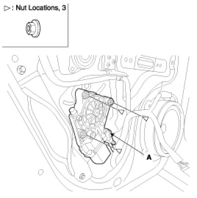 3. After disconnecting the connector (A), remove the power window motor (B).