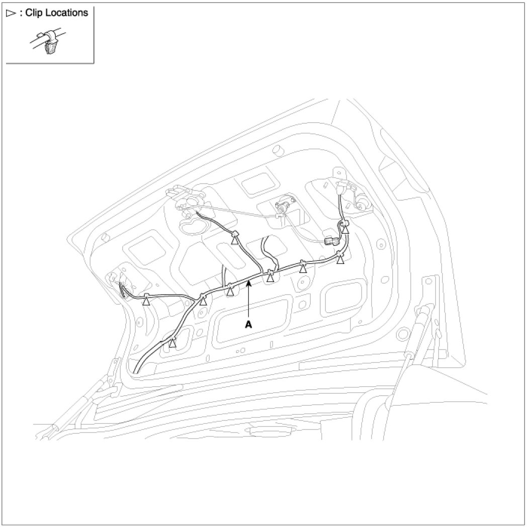 6. After loosening the mounting bolt, then remove the trunk lid assembly (A).
