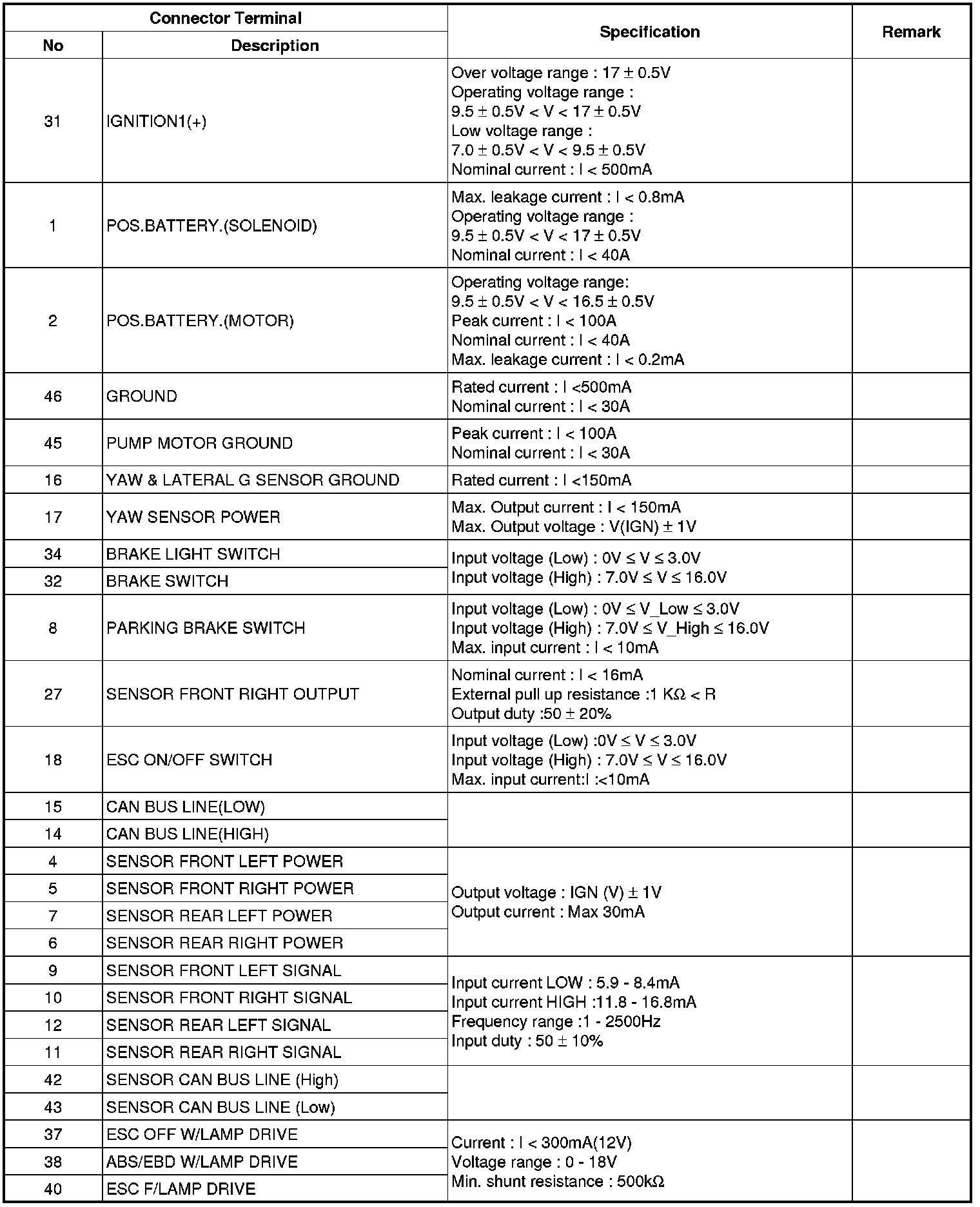 ESC Connector Input/Output