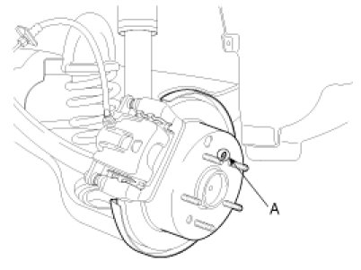 Remove the brake disc from hub using M8 screw(A) if the brake disc has been seized with the hub due to corrosion or overheat.