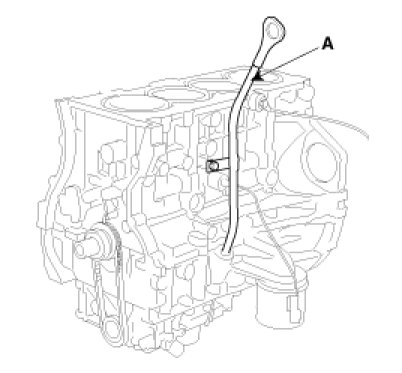 (3) Install the oil level gauge assembly(A) with the bolt.