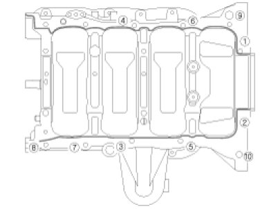 (2) Install and uniformly tighten the 10 bearing cap bolts(A), in several passes, in the sequence shown.