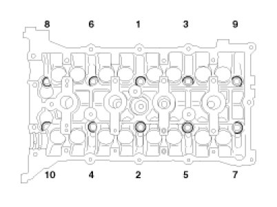 cylinder head bolts and plate washers, in several passes, in the sequence shown.