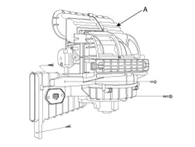 5. Remove the blower unit (A) from the heater unit after loosening a mounting bolt and 3 screws.