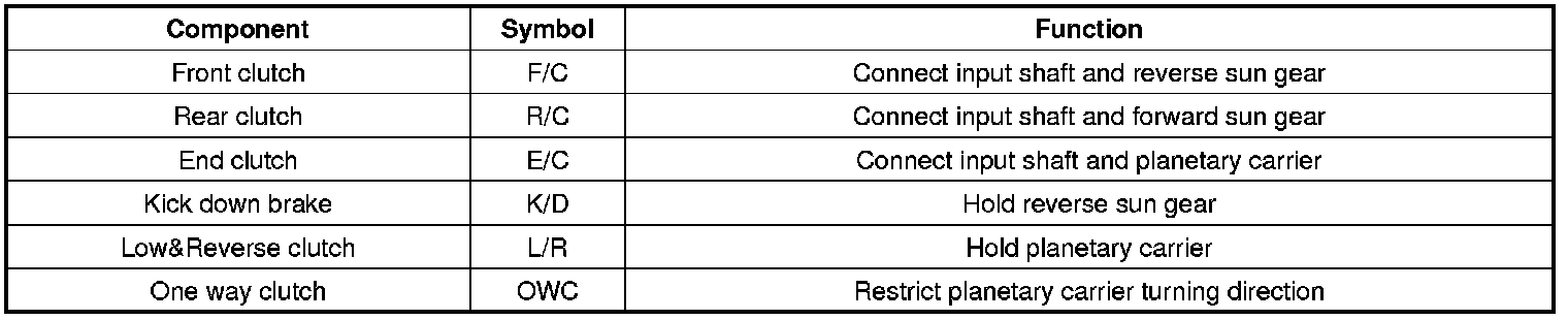 The carrier is built in one unit with the low reverse brake's hub and the outer race of the one-way clutch. The carrier is connected to the end clutch via the end clutch shaft.