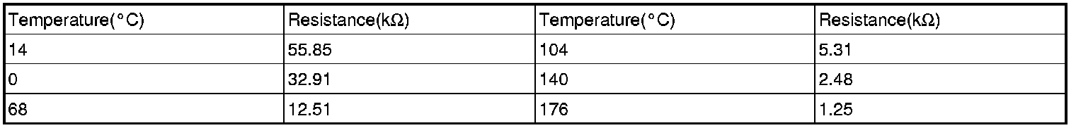 ** Resistance value of water temp sensor as a function of temperature.