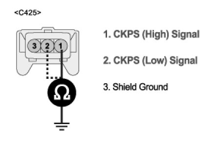 (2) Measure resistance between terminal 1 (2) of CKPS harness connector and chassis ground.