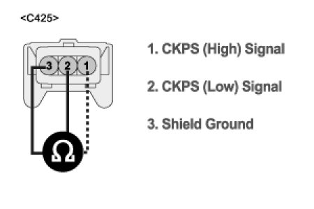 (4) Measure resistance between terminals 1 (2) and 3 of CKPS harness connector.